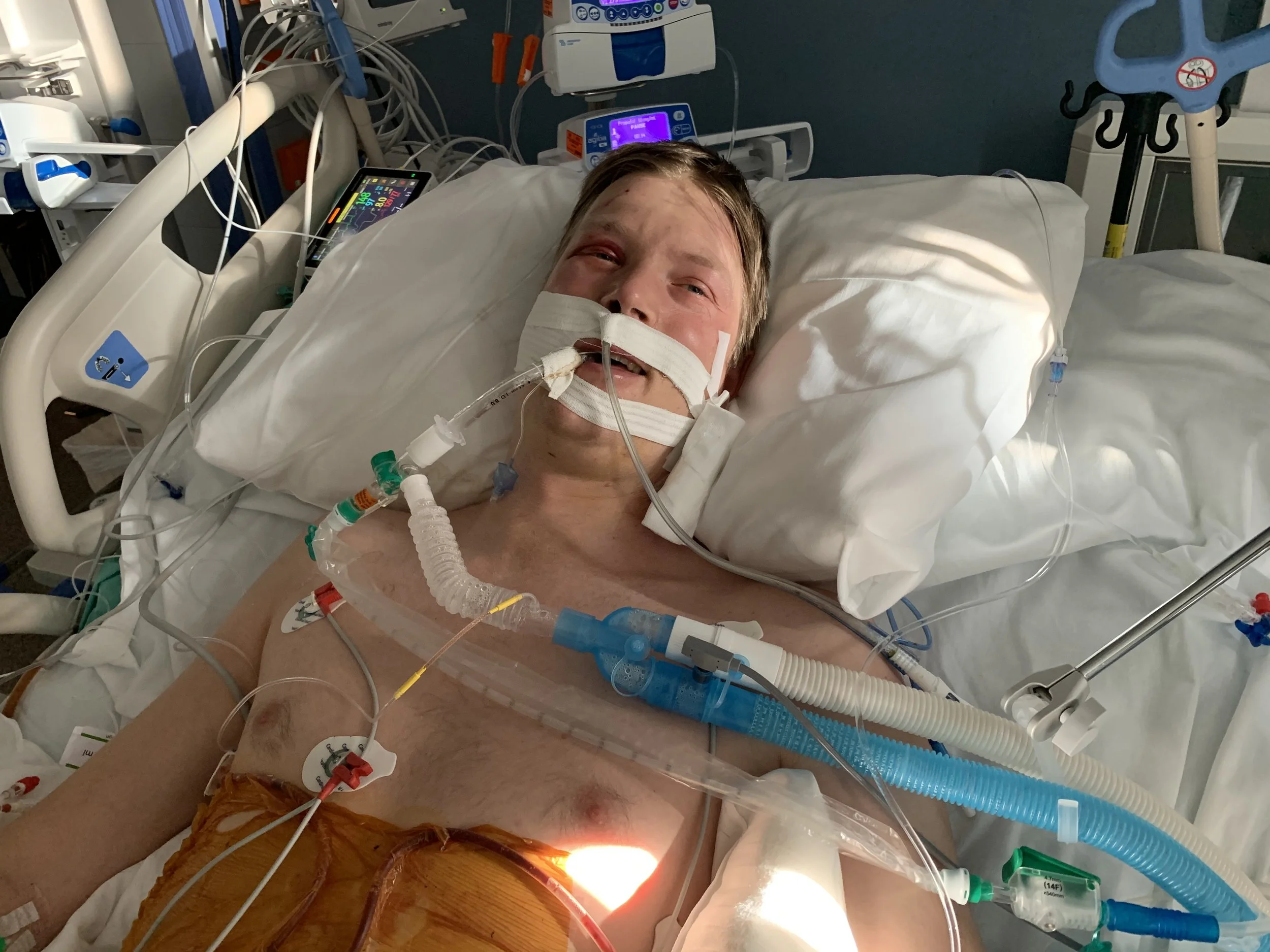 After that, I remember waking up with a whole bunch of tubes in me and looking down to see my intestines poking out of my stomach.