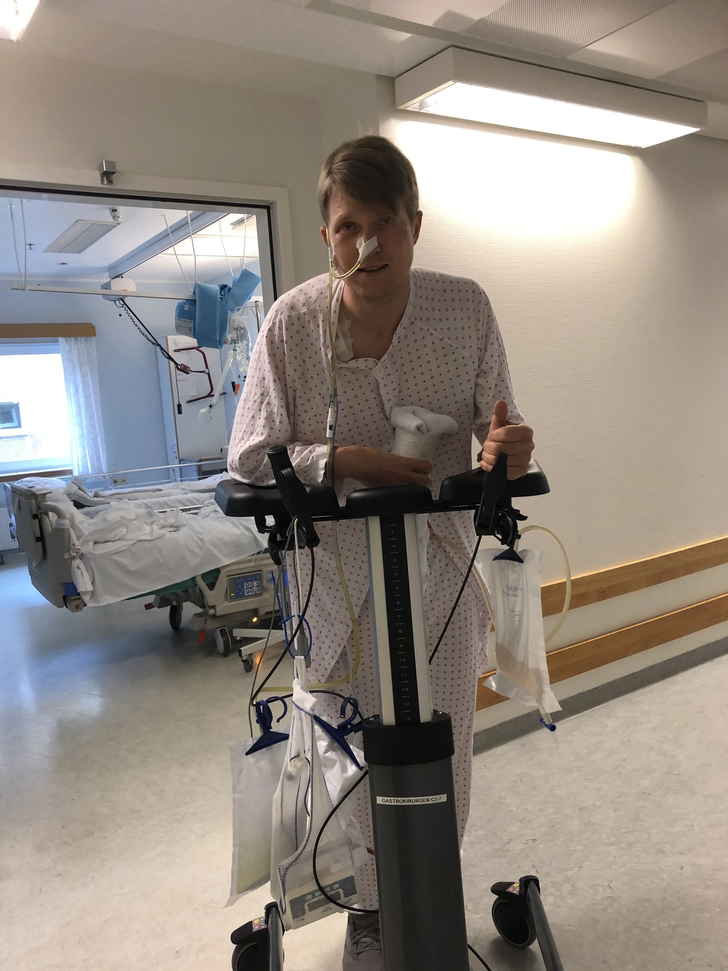 After a bunch more tests they determined that it most likely would solve itself over time as long as I kept eating so that it would stretch. Problem was that I was really struggling to eat. I would spend an hour eating a yoghurt. But I tried my best. After a few days I started to feel better and the nurses started to remove all the hoses connected to me one by one. It felt so nice to finally be able to move without being tangled in a bunch of hoses.